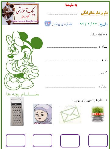 به نام خداوند علم و قلم در این وبلاگ سعی شده است نمونه سوالات امتحانی- تکالیف هفتگی (آدینه)- آزمون های عملکردی - چک لیست دروس - مطالب علمی و آموزشی - مطالب بهداشتی - و در مجموع مطالب مربوط به آموزش ابتدایی و مطالب خواندنی دیگر گنجانده شود که امیدوارم مورد توجه دوستان بازدیدکنندگان قرار گیرد قرار گیرد.