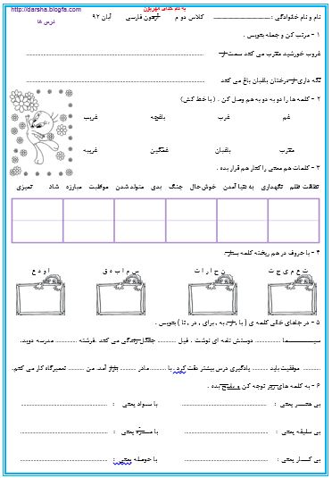 انلود+آزمون ریاضی فصل1تا5+ششم